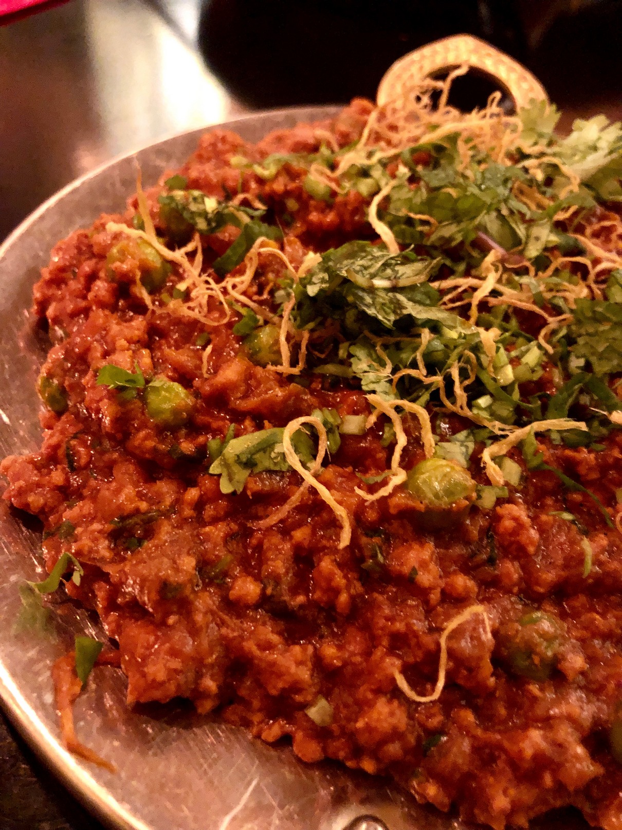 For mains, we had Hyderabadi Kheema, a Goan Prawn Curry and Kerala Chicken Curry alongwith Naan of three types – plain, garlic and chilly olives. The garlic and plain naans were good but the chilly olive naan was sooo hot!!! Yea, I should have known but I didn’t think it would be so spicy. It really doesn’t pair with any spicy dishes. The curries were all delicious. The Hyderabadi Kheema with green peas was cooked well and the portion size was huge too.
