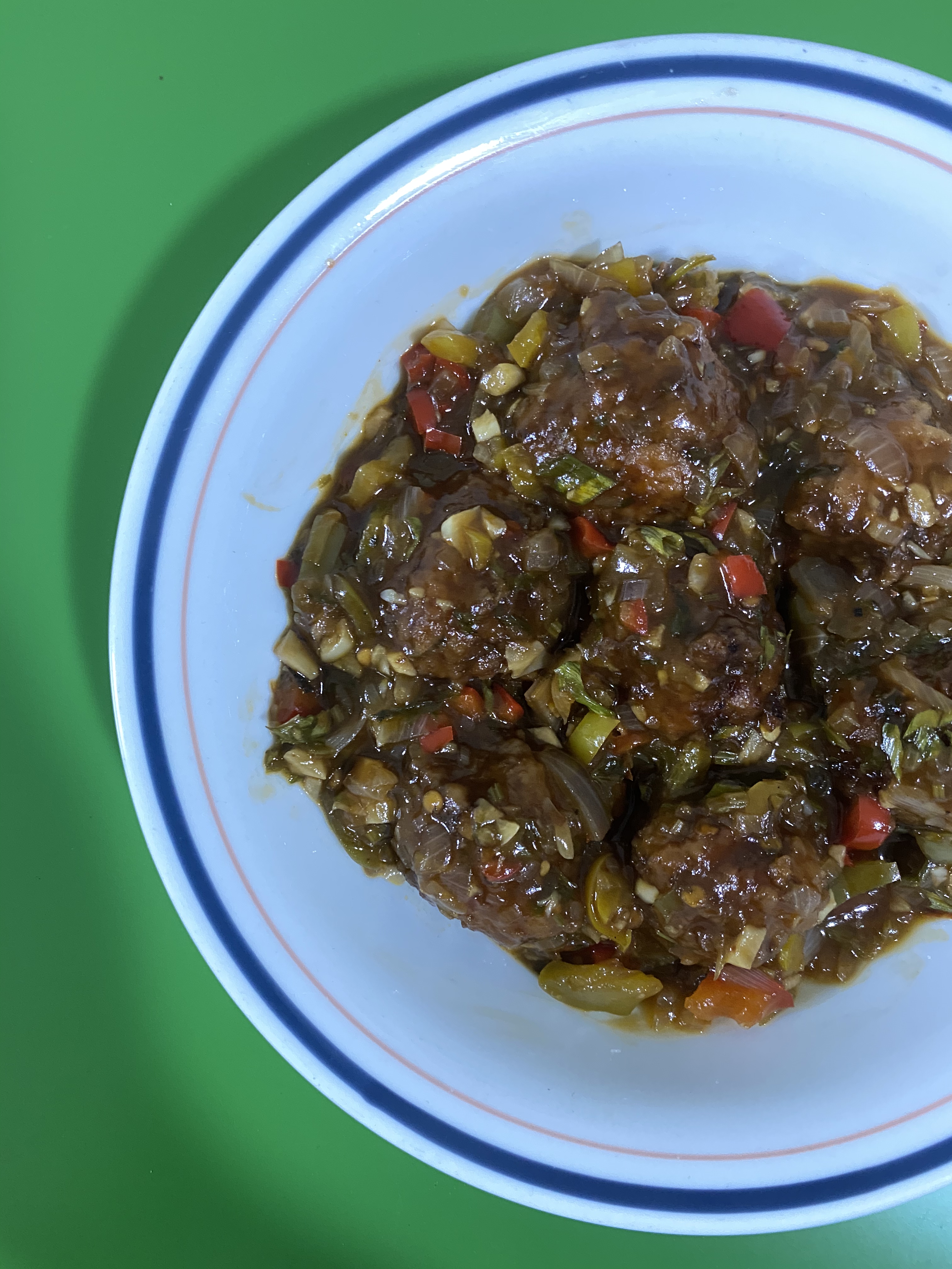 I hadn’t had Veg. Manchurian in a long time, so I ordered a half-portion. Even so, it was a big serving with 7 Manchurian balls and gravy.
