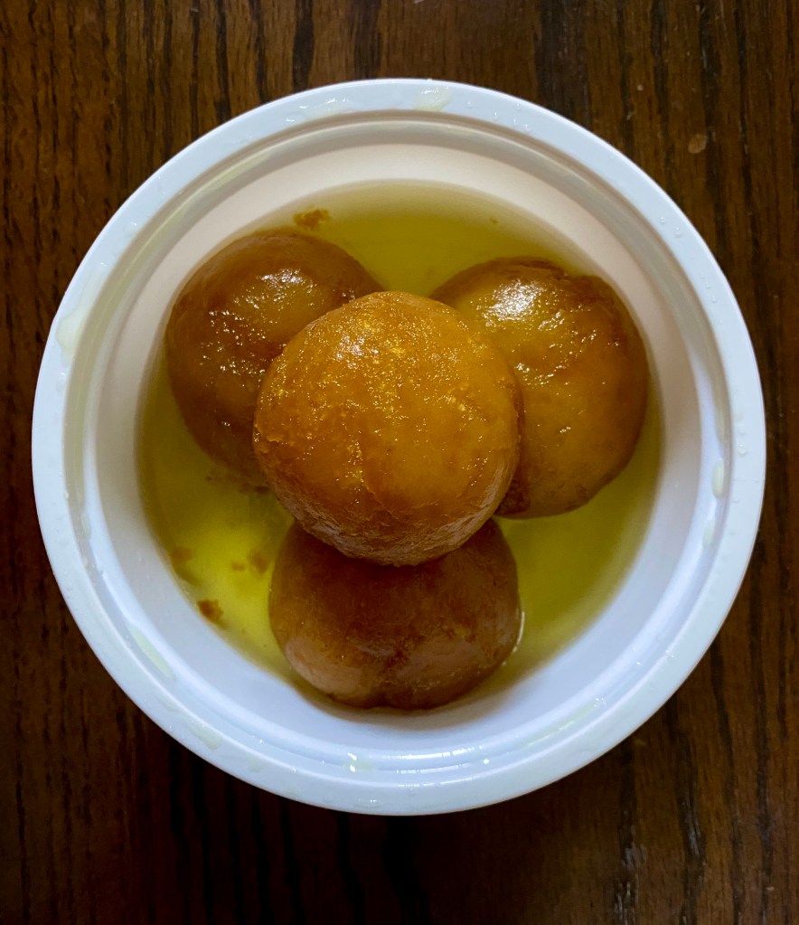 Dessert is an essential and we ended the meal with soft Gulab Jamuns soaked in sweet syrup.