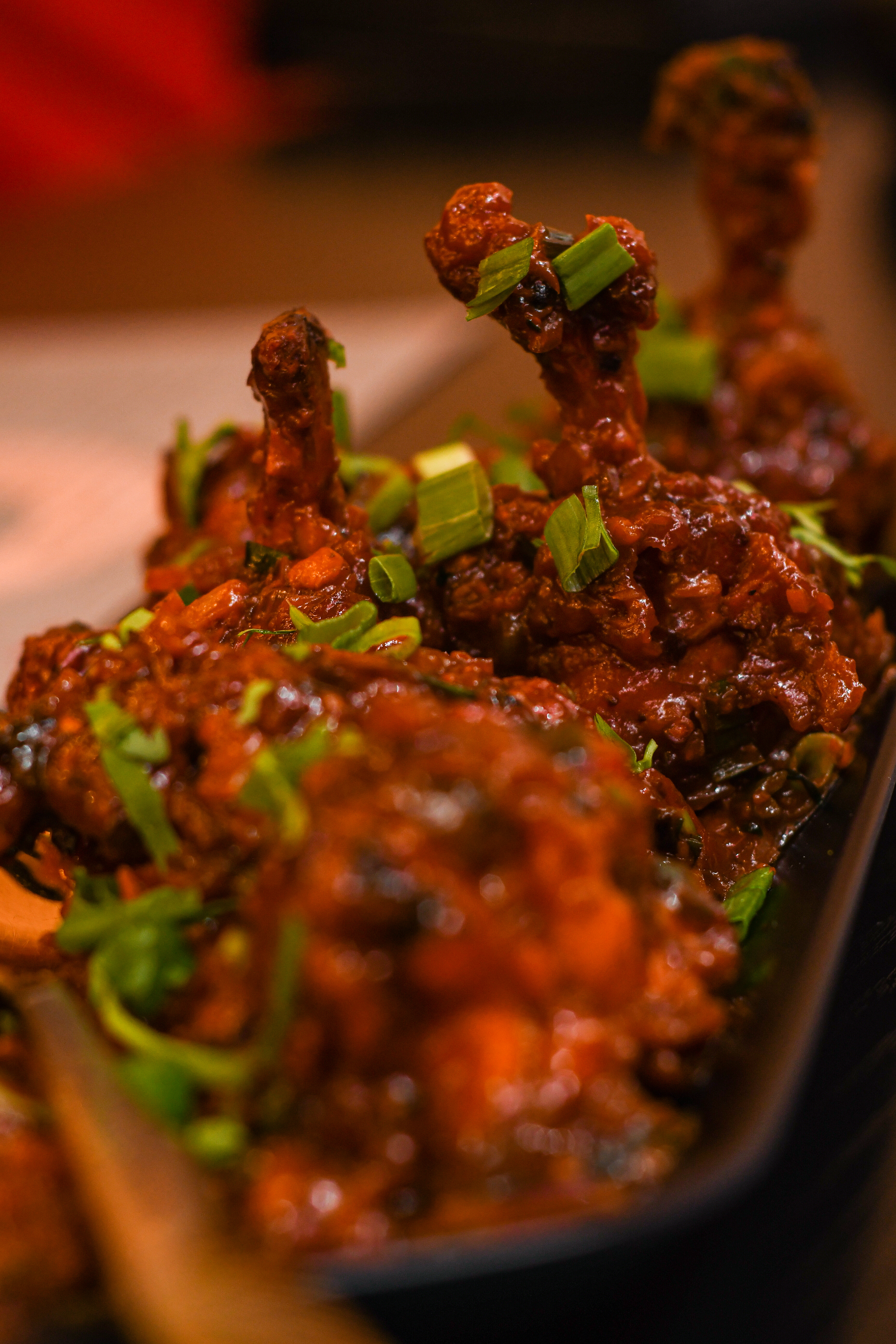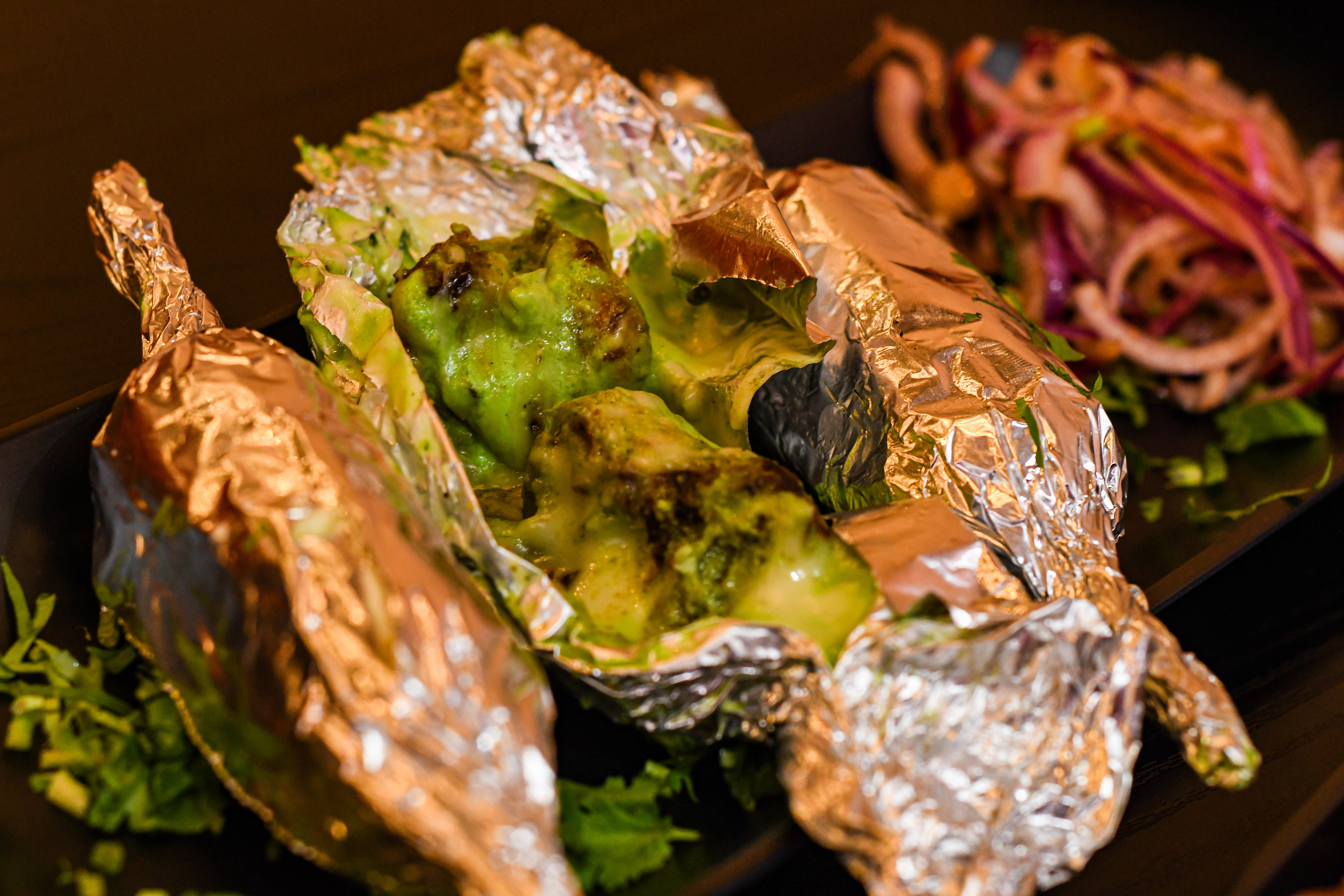 Presentation-wise Drums of Heaven looked tantalizing while the Special Foil Chicken was simple but taste-wise, the latter blew me away. Special Foil Chicken is cubes of boneless grilled chicken doused in cheesy green sauce and then wrapped in foil. Served with an onion salad, it was cheesy and delicious. The Drums Heaven Chicken was massive and was served with a thick saucy base. It was quiet a task biting into the huge chicken lollipops, but I loved the flavours.